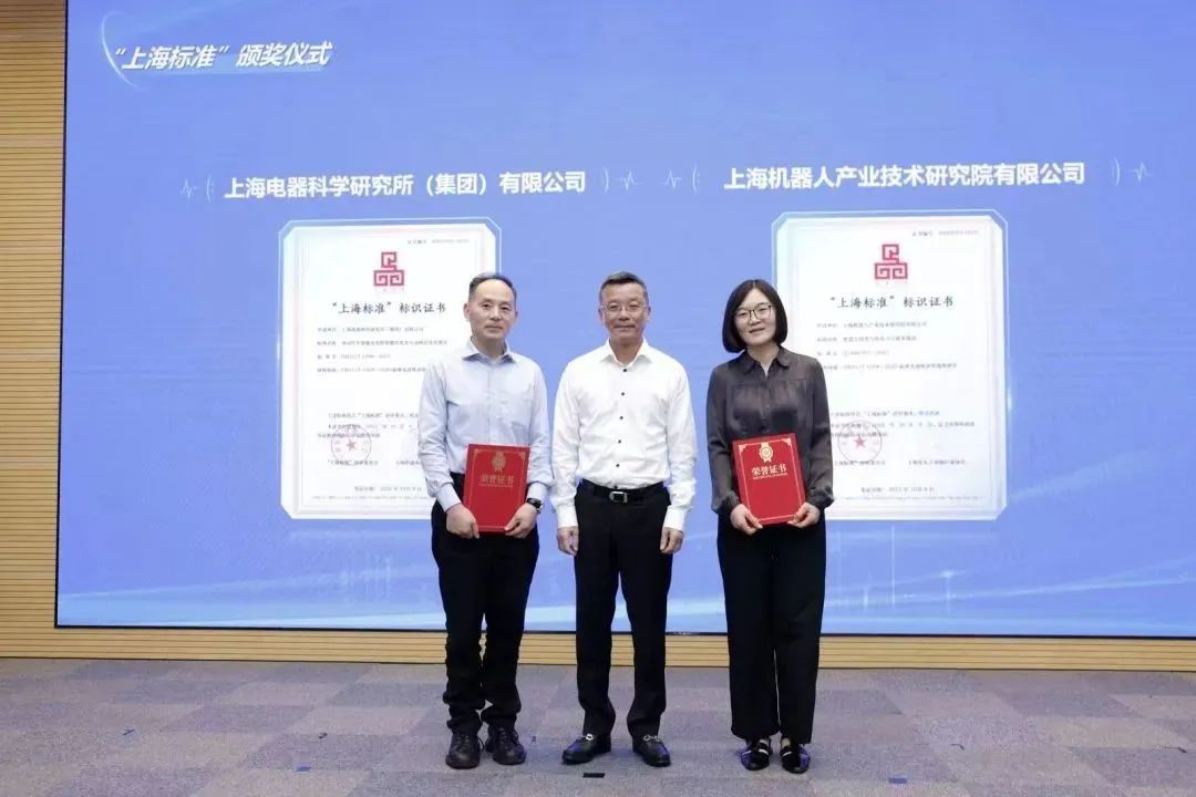 活动现场,肖文高为获得“上海品牌”认证的上海电器科学研究所(集团)有限公司颁奖。陈彦峰为获得“上海标准”评定的上海电器科学研究所(集团)有限公司和东升国际(中国)机器人有限公司官网有限公司颁奖。