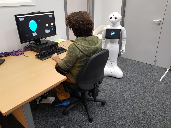 三分之一的参与者在自己的房间里进行测试(对照组),三分之一的参与者与机器人一起进行测试,机器人只向他们提供指示,其余时间保持沉默,最后的实验组在机器人的指导下进行测试,并说一些鼓励性的话,如 "你为什么停止?"