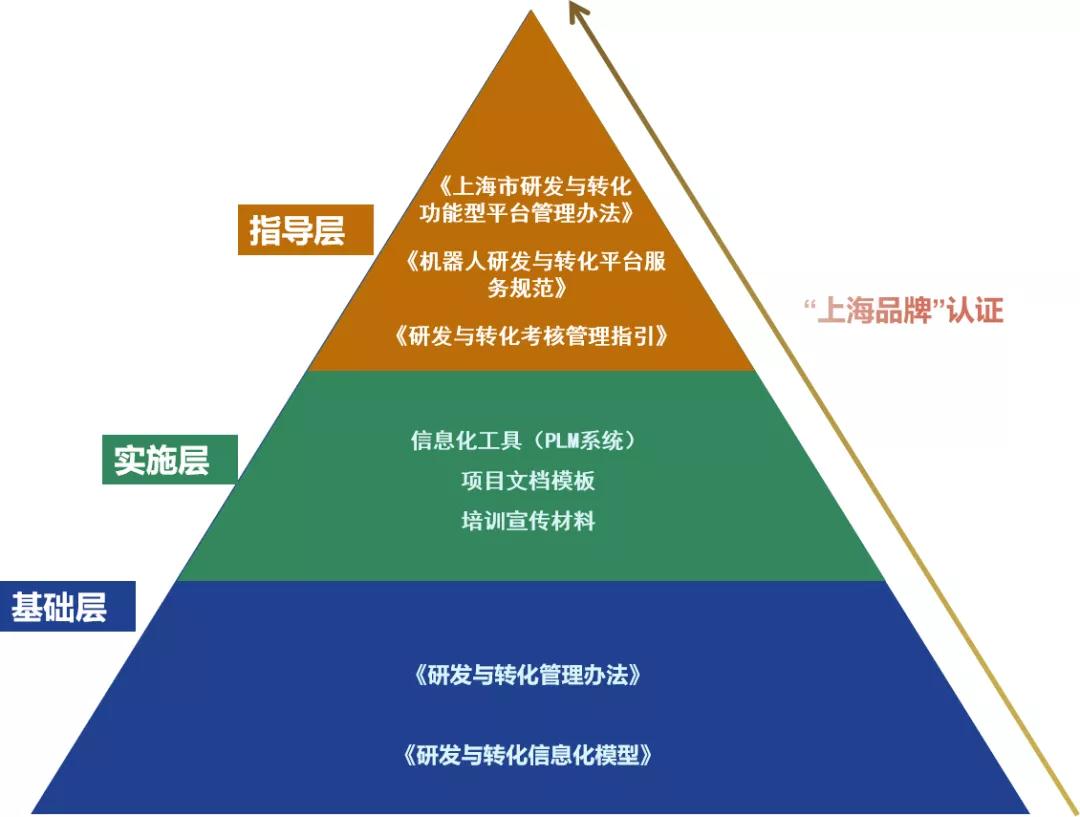 “研发与转化管理体系”分指导层、实施层、基础层三层进行构建。指导层为整个体系提供支撑和指引,实施层通过信息化工具和文档模板等具体落实体系内容,基础层直观地规范研发与转化流程及规范。