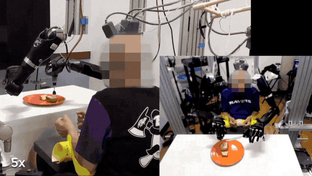 之后在吃蛋糕实验中,参与者可以根据自己喜好微调机械臂控制切下蛋糕的大小,实现了双手协调的精细操作。