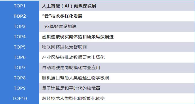 近日,《科技智囊》杂志整理出2021年十大科技前沿趋势,排名如下: