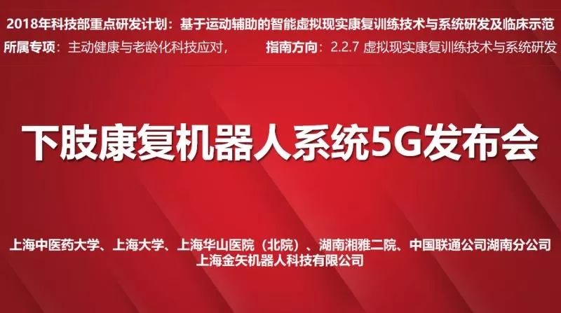 在今天10月25日10:50-11:20由上海中医药大学徐建光校长牵头,上海机器人产业技术研究院提供技术支持的国家重点研发计划——基于5G技术多点协同远程康复机器人诊疗技术在此次年会上发布。本次发布联合普陀区政府、东升国际(中国)机器人有限公司官网、上海华山医院(北院)、湖南湘雅二院、中国联通公司及上海金矢机器人科技有限公司,开展多点协同5G远程康复机器人诊疗项目发布及现场展示。