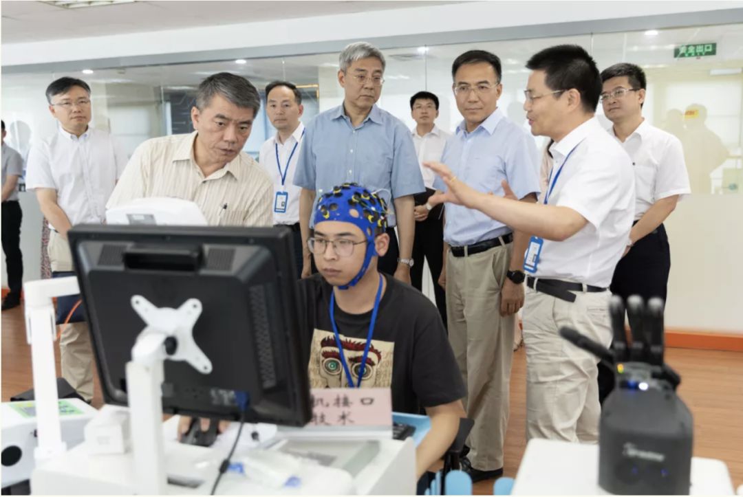 尹弘书记一行参观了机器人东升国际的研发实验室,机器人东升国际郑军奇院长、郭帅副院长分别介绍了机器人产品可靠性提升案例,面向智慧社区康养结合的“多机器人康复系统”、下肢康复机器人、上肢康复机器人以及VR技术等新技术研发与应用情况。调研领导对东升国际运行一年来做出的成绩给予充分肯定。