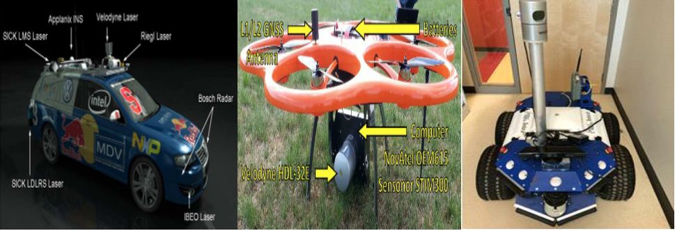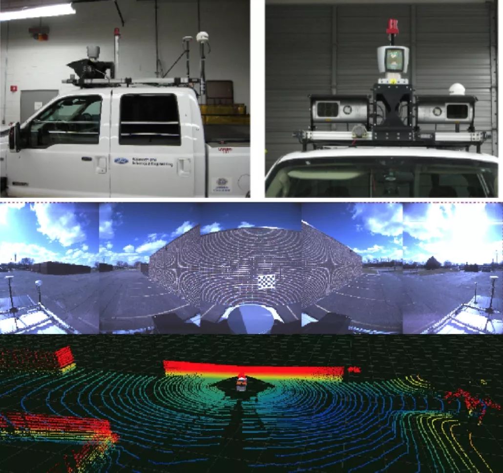 通过调研及查找相关文献,目前激光雷达和全景相机组成系统主要应用于SLAM、地图构建、定位、导航、路径规划等研究领域。该系统可以实现无人驾驶三维环境识别重建、机器人东升国际室内外高精度地图构建和跟踪导航,能够将外界环境颜色信息和深度信息集于一体,可大大缩小识别误差和信息错误丢失率,如下分别为装有该系统的无人车载实物图及其实现的地图构建效果图。